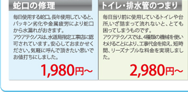 いざトラブルが発生!!でも、どこに頼んだらいいのかわからない…大手CM会社、チラシをまいてる業者、地元の水道屋さん、などありますが…アクアテクノスの安心ポイントをお伝えします。